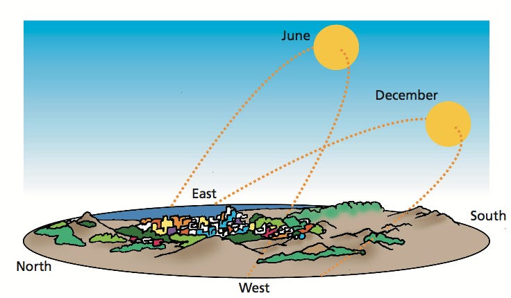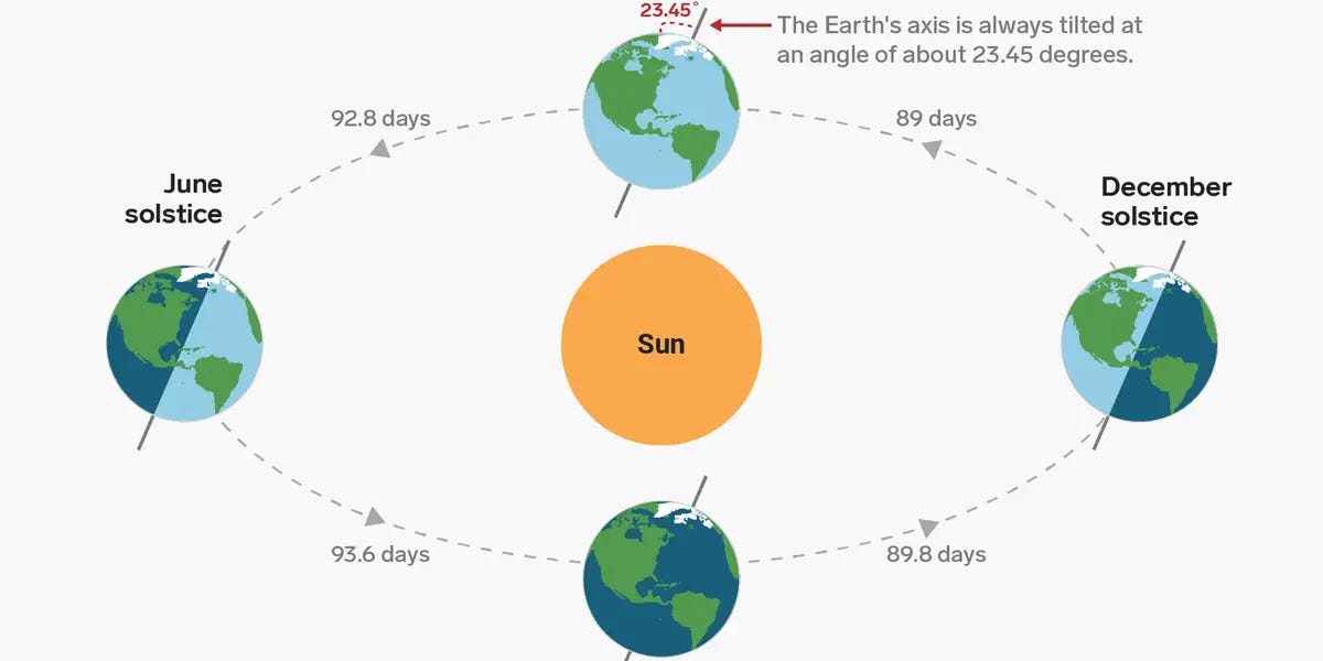 We could just as easily define the inclination angle from the number of days we are away from the equinoxes, which are days when the Sun’s declination is zero degrees.